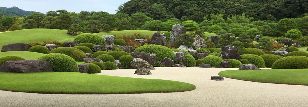 足立美术馆分为旧馆和新馆,通过旧馆外的欢迎庭,沿着顺路的指示牌, 首先看到的是苔庭,大大的玻璃窗就好像画框,把景致框了起来。
